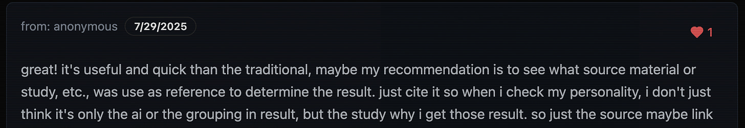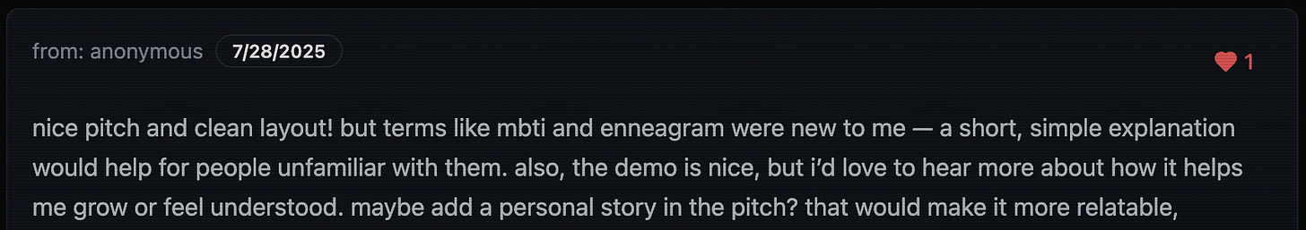 As for feedback, I was quite surprised at how well articulated and thoughtful some of it was: