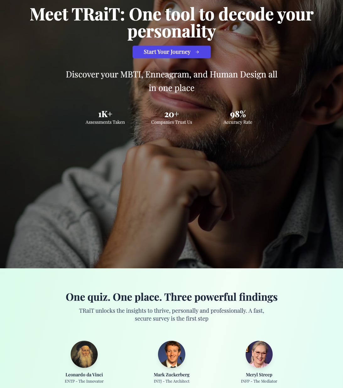 It’s called TRaiT, and it’s a tool that helps you figure out your 3 key personality types, all in one place.