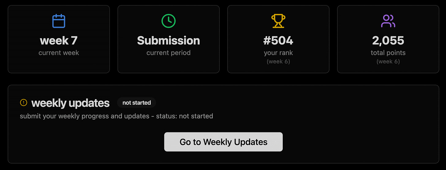 For me, I liked the community aspect and being held accountable for building in public and being in friendly competition with others.